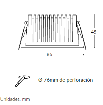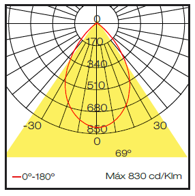 Downlight circular con tecnología LED para iluminación general, con difusor de policarbonato opal y reflector con acabado blanco o negro.