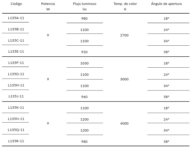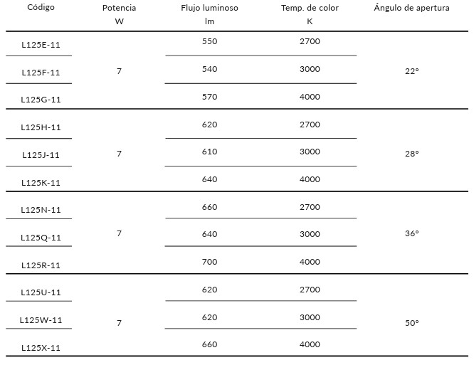 Downlight circular con tecnología LED para iluminación general, con difusor de policarbonato opal y reflector con acabado blanco o negro.